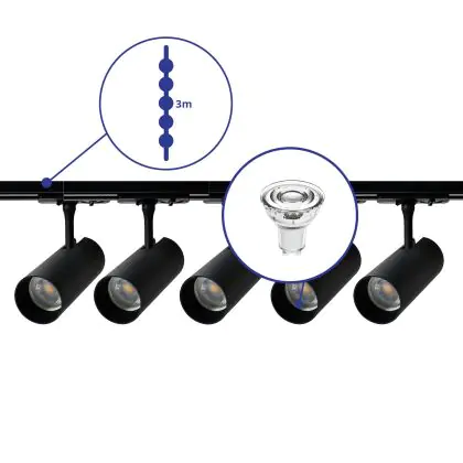 | Herstellername | Complete Straight 3-meter 1-Phase Track Set Black incl. 5x Spot fixture + GU10 2700K 3W Dim – 2x 1.5 | |