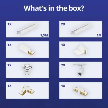 Komplettset 1-Phasen Rail L 1,5 x 2 Meter Weiß | incl. 7x Spot + GU10 2700K 3W Dimmbar + Abschlusskappe, Stromanschluss und L -Verbinder