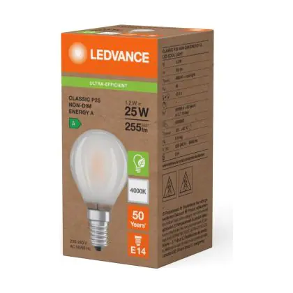 Ledvance LED Classic E14 Birne Fadenlampe Matt 1.2W 255lm - 840 | Ersatz Für 25W