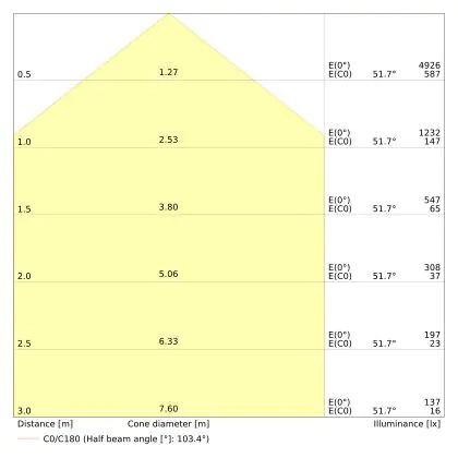 Der Abstrahlwinkel bezeichnet den Winkel, in dem das Licht aus der Lichtquelle ausgestrahlt wird. Er wird in Grad (D) angegeben. Je geringer die Gradzahl des Abstrahlwinkels ist, desto kleiner ist auch der Durchmesser des Lichtkegels, den die Lichtquelle produziert.