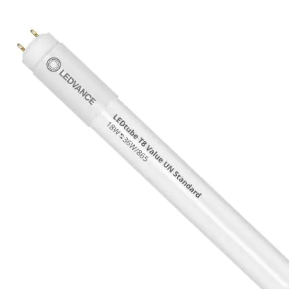 Bei der Ledvance LED Röhre T8 Value (UN) High Output 18W 2000lm - 865 | 120cm - Ersatz Für 36W handelt es sich um eine energieeffiziente LED-Röhre. Sie ersetzt Ihre konventionelle Leuchtstoffröhre mit 36W. Die Röhre ist 1211 mm lang und hat die Farbtemperatur 6500K - Tageslichtweiss. Die durchschnittliche Lebensdauer der LED-Röhre beläuft sich auf 30000 Stunden. Wir bieten Ihnen für dieses Produkt eine Garantie von 5 Jahre an.