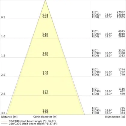 Der Abstrahlwinkel bezeichnet den Winkel, in dem das Licht aus der Lichtquelle ausgestrahlt wird. Er wird in Grad (D) angegeben. Je geringer die Gradzahl des Abstrahlwinkels ist, desto kleiner ist auch der Durchmesser des Lichtkegels, den die Lichtquelle produziert.