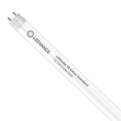 Bei der Mehrfachpackung 10x Ledvance LED Röhre T8 Value (EM/Mains) Standard Output 18.3W 2200lm - 840 | 150cm - Ersatz Für 58W handelt es sich um eine energieeffiziente LED-Röhre. Sie ersetzt Ihre konventionelle Leuchtstoffröhre mit 58W. Die Röhre ist 1514 mm lang und hat die Farbtemperatur 4000K - Kaltweiss. Die durchschnittliche Lebensdauer der LED-Röhre beläuft sich auf 30000 Stunden. Wir bieten Ihnen für dieses Produkt eine Garantie von 5 Jahre an.