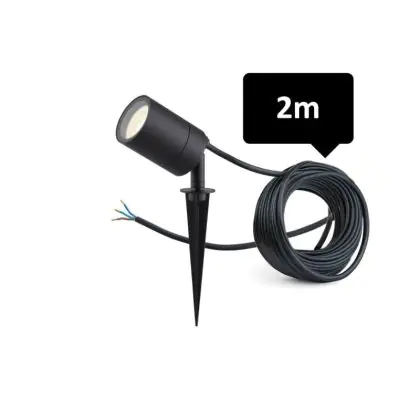 D'Lite Piquet Light Fuse Câble D'Alimentation Noir | IP65 - Convient pour 1x GU10 | incl. câble 2 Meter