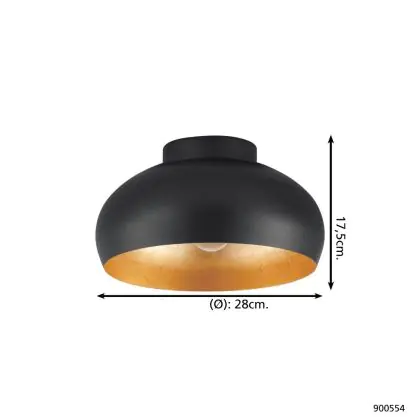 Eglo Plafonnier Mogano 2 Noir, Dorée | Convient pour E27