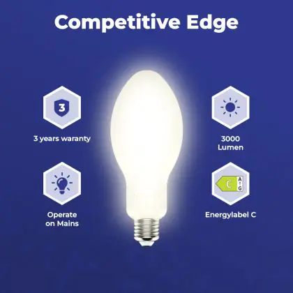 Quels avantages pour cette lampe LED HID Elliptique E27 18W 3000lm - 840 Blanc Froid | Remplacement 50W ?
