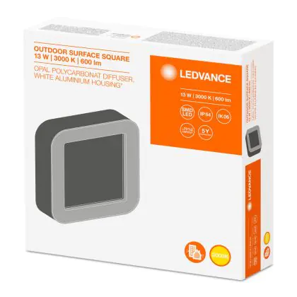 Description Ledvance Applique Murale LED d'extérieur Carré 13W 3000K Blanc