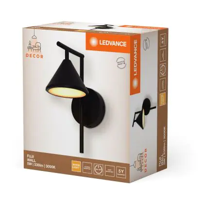 L’applique murale LED Ledvance LED Decor Applique Murale Fuji Noir 5W 180lm - 930 Blanc Chaud| Meilleur Rendu De Couleur est le luminaire idéal pour l’éclairage des endroits domestiques pouvant être humide et poussiéreux. Avec son indice de protection IP20, ce luminaire peut résister aux jets d’eau et à la poussière. On retrouve très souvent ce type d’éclairage dans les parkings, les cages d’escaliers, les halls d’immeubles… Ledvance propose une applique murale disposant de la technologie LED Intégré, vous permettant ainsi d’avoir un luminaire avec un faible impact sur l’environnement et capable de tenir jusqu’à 30000 heures.