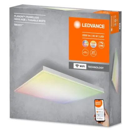 Ledvance Smart+ Wifi Plafonnier LED Planon sans cadre 30x30cm 20W 1500lm - 830-865 Accordable Blanc | RGBW - Dimmable
