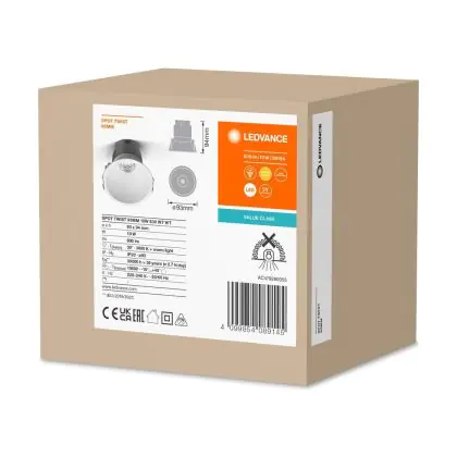 Ledvance Spot LED Twist Pro Aluminium Blanc Réflecteur 10W 800lm 30D - 830 | 93mm - Diamètre 85mm - IP20 est un spot LED encastrable. Ce luminaire est conçu pour un éclairage d’accentuation pour un usage domestique ou bien professionnel. LED Intégré, ce spot LED Ledvance en Aluminium a besoin d’une place nécessaire de 85mm de largeur et mm de profondeur. Ce luminaire est compatible avec une ampoule GU10, il est important de faire attention si vous décidez de changer d’ampoule.
