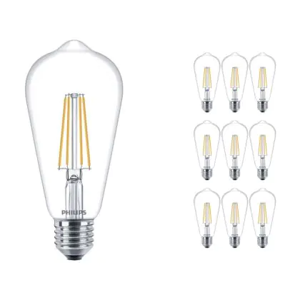 Lot 10x Philips Corepro LED Ampoule E27 Edison Filament Claire 7W 806lm - 827 Blanc Très Chaud | Équivalent 60W