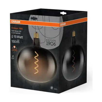 Cette ampoule Osram Vintage 1906 LED Classic Globe LED E27 Special Filament Smoke 4.5W 150lm - 818 | Remplacement 15W avec son efficacité lumineuse de lumen par watt vous permettra de profiter d’un éclairage de qualité. Avec sa durée de vie de 15000 heures, vous n’aurez pas à vous soucier de son remplacement avant quelques années.