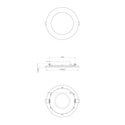 | Nom du fabricant | Budgetlight LED Downlight Slim V2.0 IP44 12W 3000K Cutout Ø150mm Frame Ø170mm w/ 1-10V driver | |